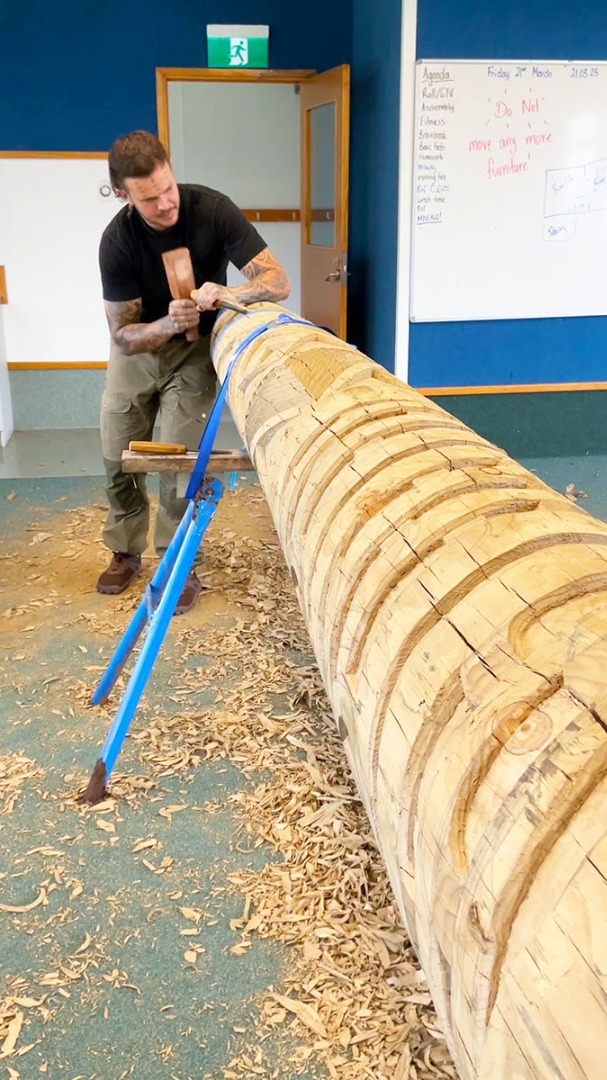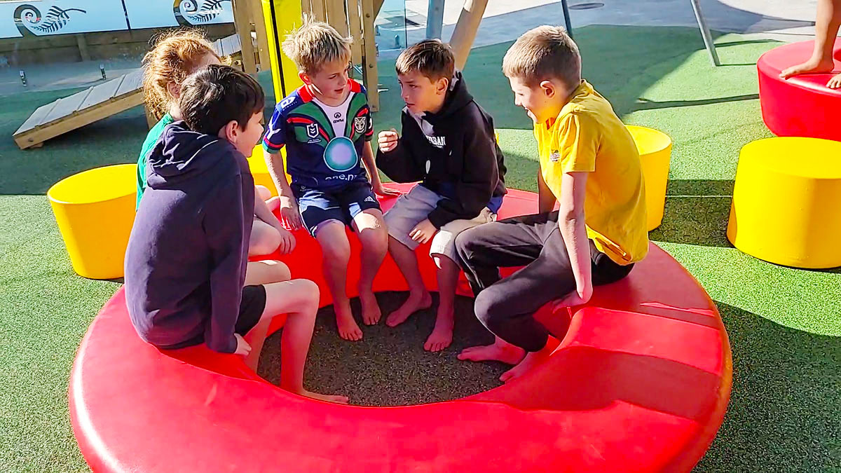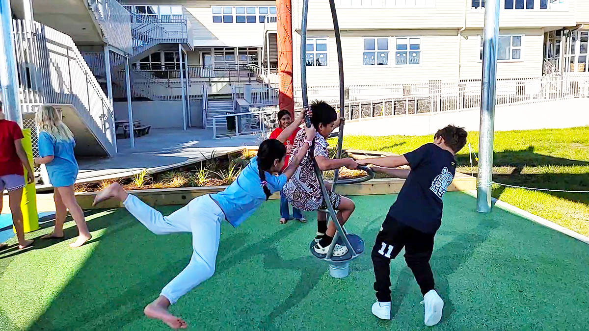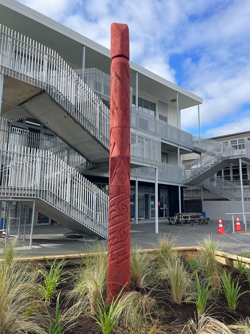 A special feature is the kaitiaki pou, carved on site by a local carver. It adds a distinctive identity to the playground and reflects the school’s connection to place.