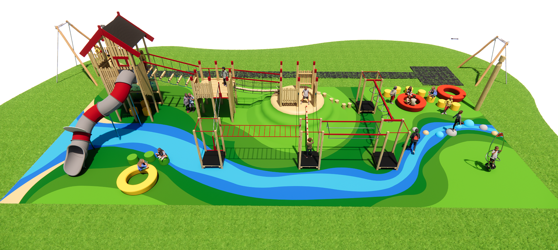 The standout multi-level structure offers graduated levels of difficulty, helping students build confidence, coordination and strength. High-impact features such as the Kompan Rocket Roller and the 25-metre Flying Fox bring speed, excitement and healthy risk-taking into the mix, ensuring older students stay engaged and active.