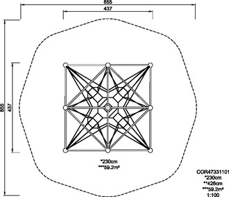 FALL HEIGHT = 230cm, TOTAL HEIGHT =426cm, IMPACT AREA = 59.2.m2