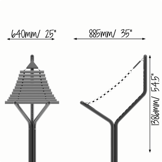 The Harmony is based upon a traditional Vietnamese Bamboo xylophone called a T'rung.<br/phil><br/phil>Elegant, with an irresistibly beautiful sound and resonance, Harmony is perfect for melodic exploration. Like a vertical marimba or xylophone, the eleven thick anodised aluminium tubes are arranged lengthwise, horizontally and supported by heavy-duty nylon coated galvanised steel cables.<br/phil>