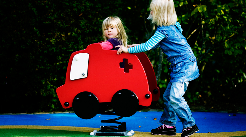 Ambulances are speedy and involved in dramatic activities. To ride the ambulance means being in the center of the action. The cute Ambulance invites the player for a ride, securing a safe position between the two side panels, from where the child can experiment with balance and movement.