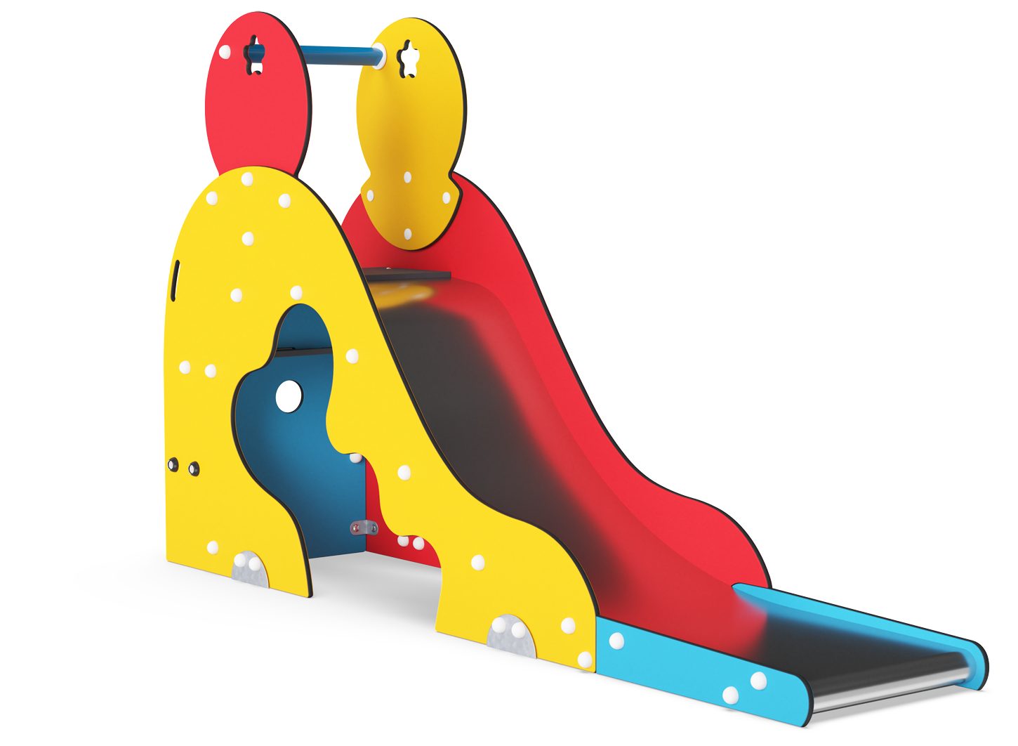 Aladdin's Cave features a set of good secure steps, a large platform, tall side panels and a long chute - which have all been designed with the youngest age group in mind. There is also a cave under the slide where the 40 thieves can hide the treasure!
