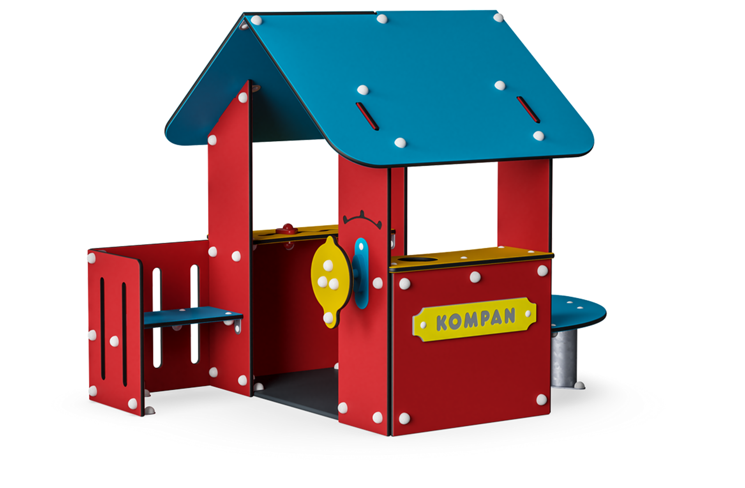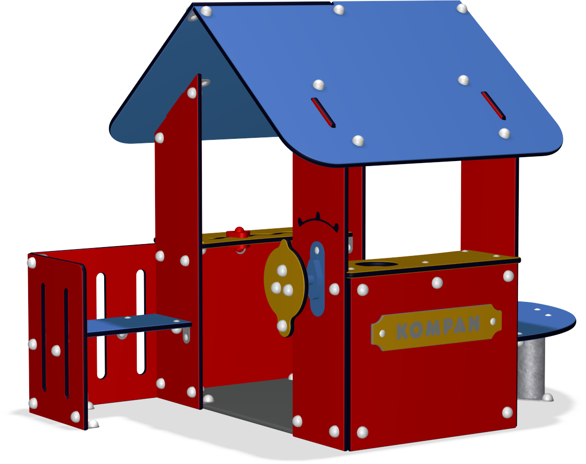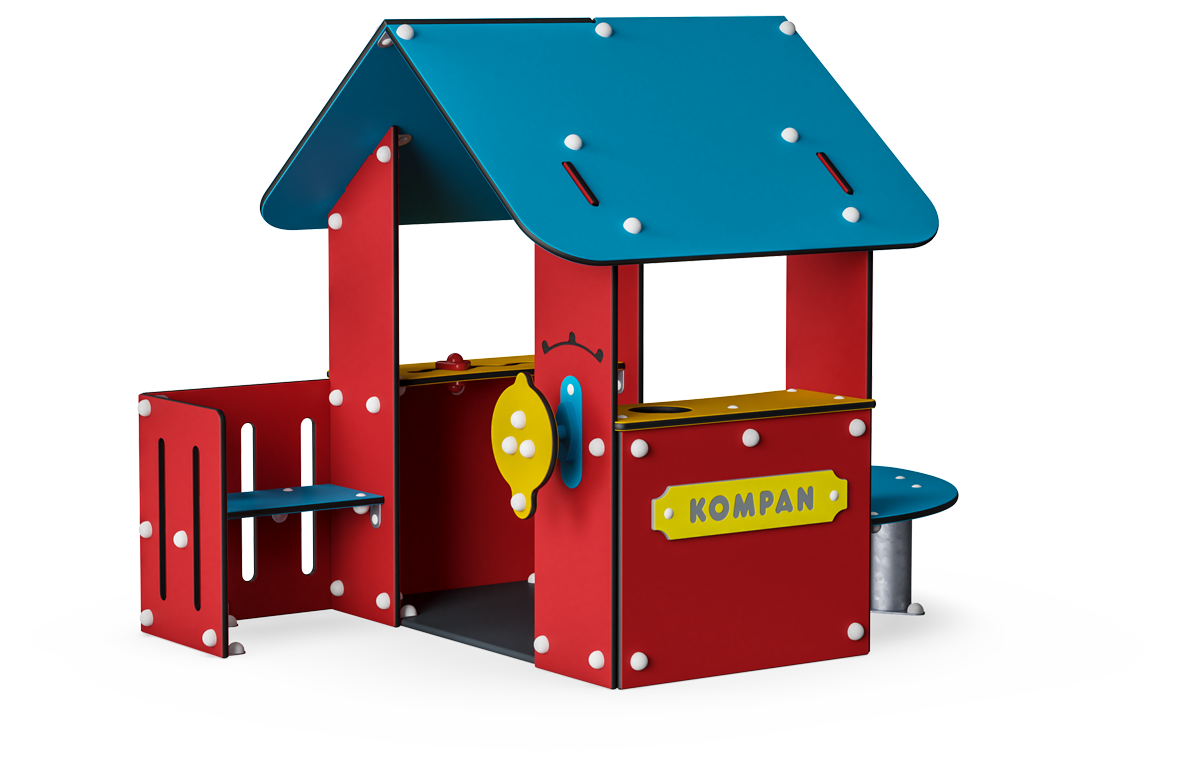 With its multitude of benches, tables and play surfaces this playhouse certainly lives up to all modern requirements. There is even a corner bench on the veranda that is big enough to allow an adult to join in the world of Let's Pretend, and the split level table on the outside gives an extra dimension to the game.