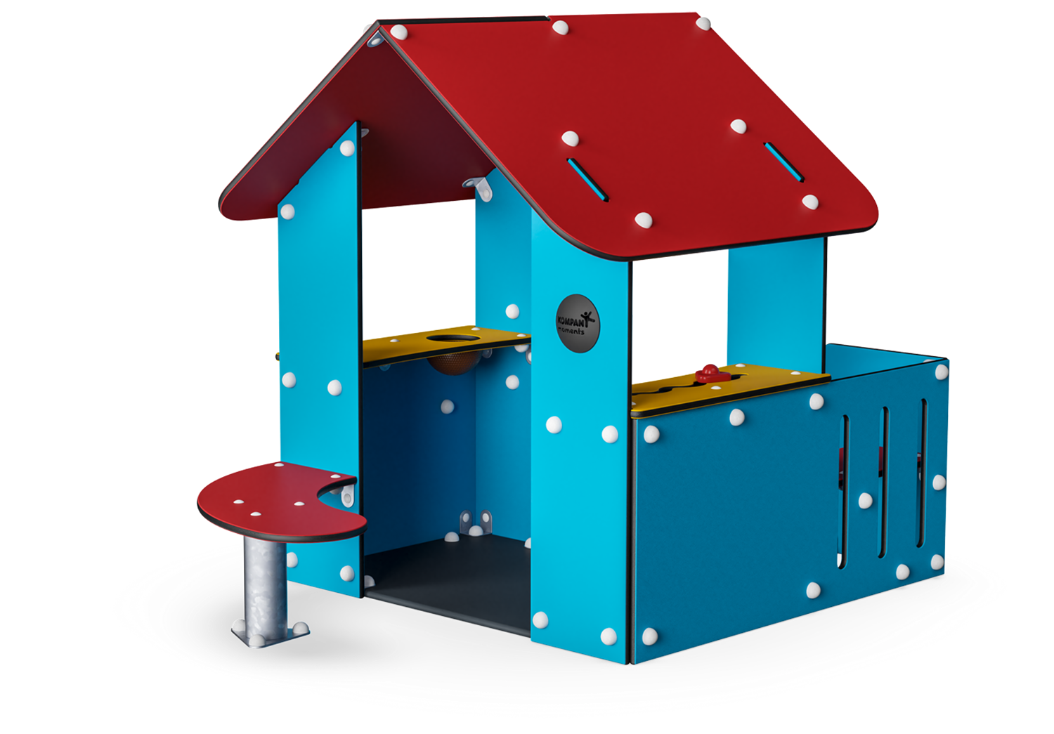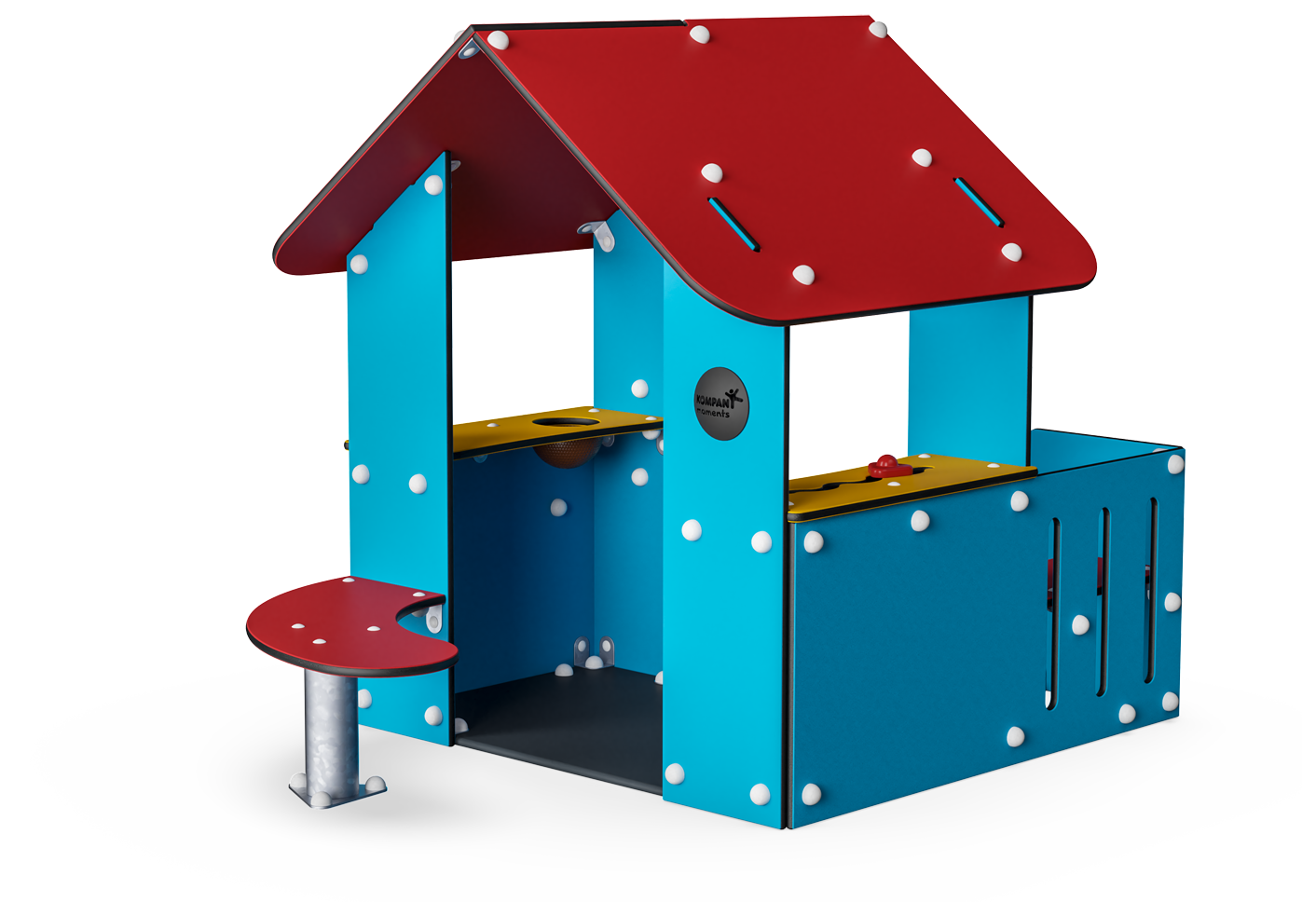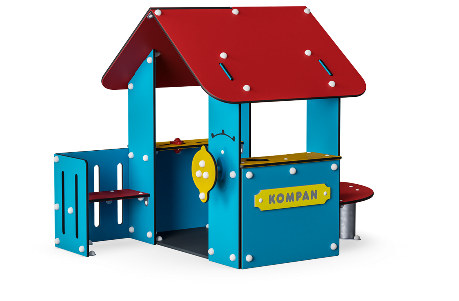 With its multitude of benches, tables and play surfaces this playhouse certainly lives up to all modern requirements. There is even a corner bench on the veranda that is big enough to allow an adult to join in the world of Let's Pretend, and the split level table on the outside gives an extra dimension to the game.