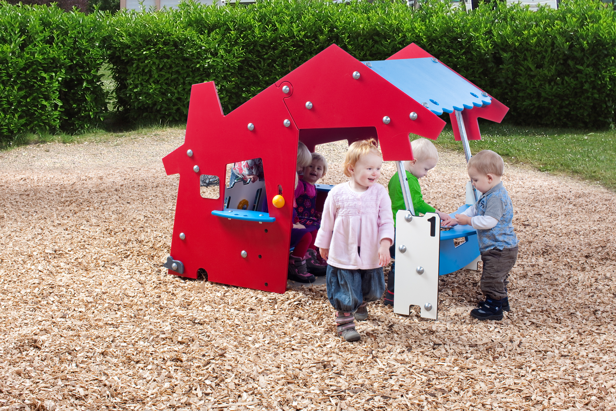 The transparent and versatile Double House is a frame for numerous stories, imaginative play and tactile cause-and-effect discoveries. The roof creates a playful shelter with stars carved into it to peep through. Manifold play activities and tactile elements are found all round the house.