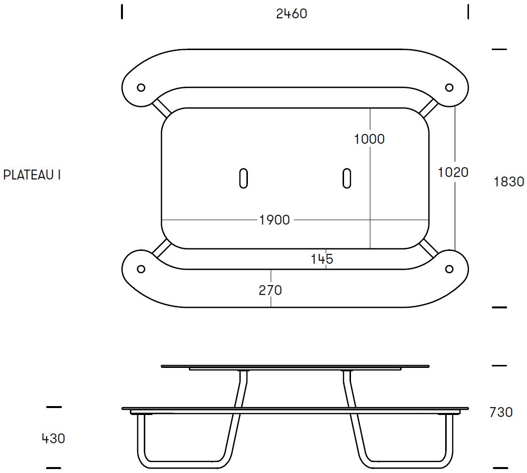 There are three available PLATEAU models providing accessibility for all kinds of users. Combining the models in different ways provides a variety of solutions both functionally and aesthetically. Designed to provide numerous seats in socially oriented formations, Plateau is produced from durable materials requiring no other maintenance than soap and water. <br/phil><br/phil>Plateau I features two benches surrounding the table like a pair of parentheses, with room for a wheelchair at either end. Seats 6-8 - including two wheelchairs.