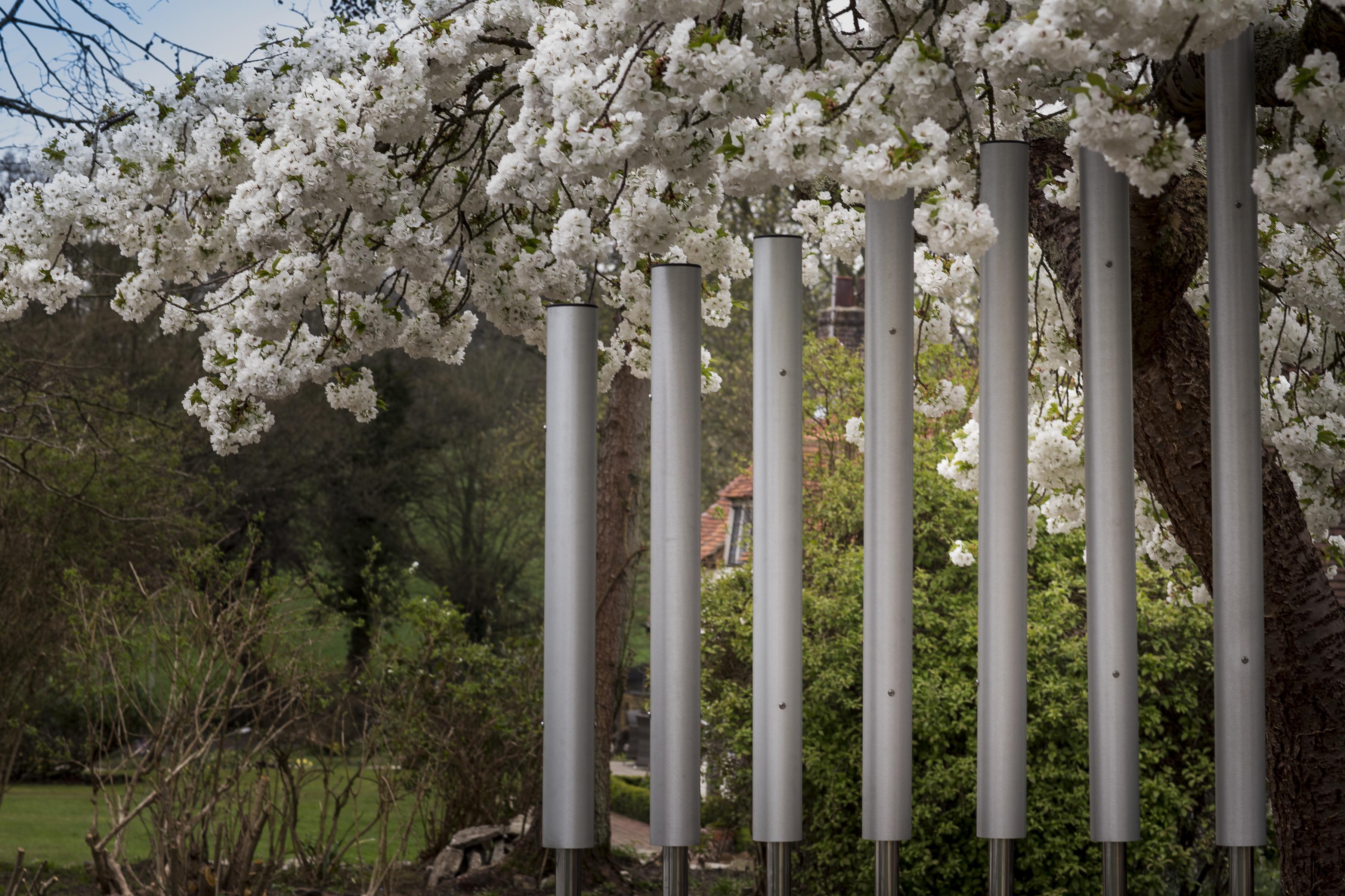 These big, bold, beautiful bells have outstanding resonance, the bells produce deep tones which you can feel as well as hear.<br/phil><br/phil>The seven 100mm diameter aluminium bells range from 1.6m to 2.2m tall when installed and they can be installed in any arrangement. They are Pentatonically tuned ranging from A3-C5.<br/phil><br/phil>Simple yet striking, these bells will bring an architectural feature to your outdoor area as well as an amazing auditory experience.