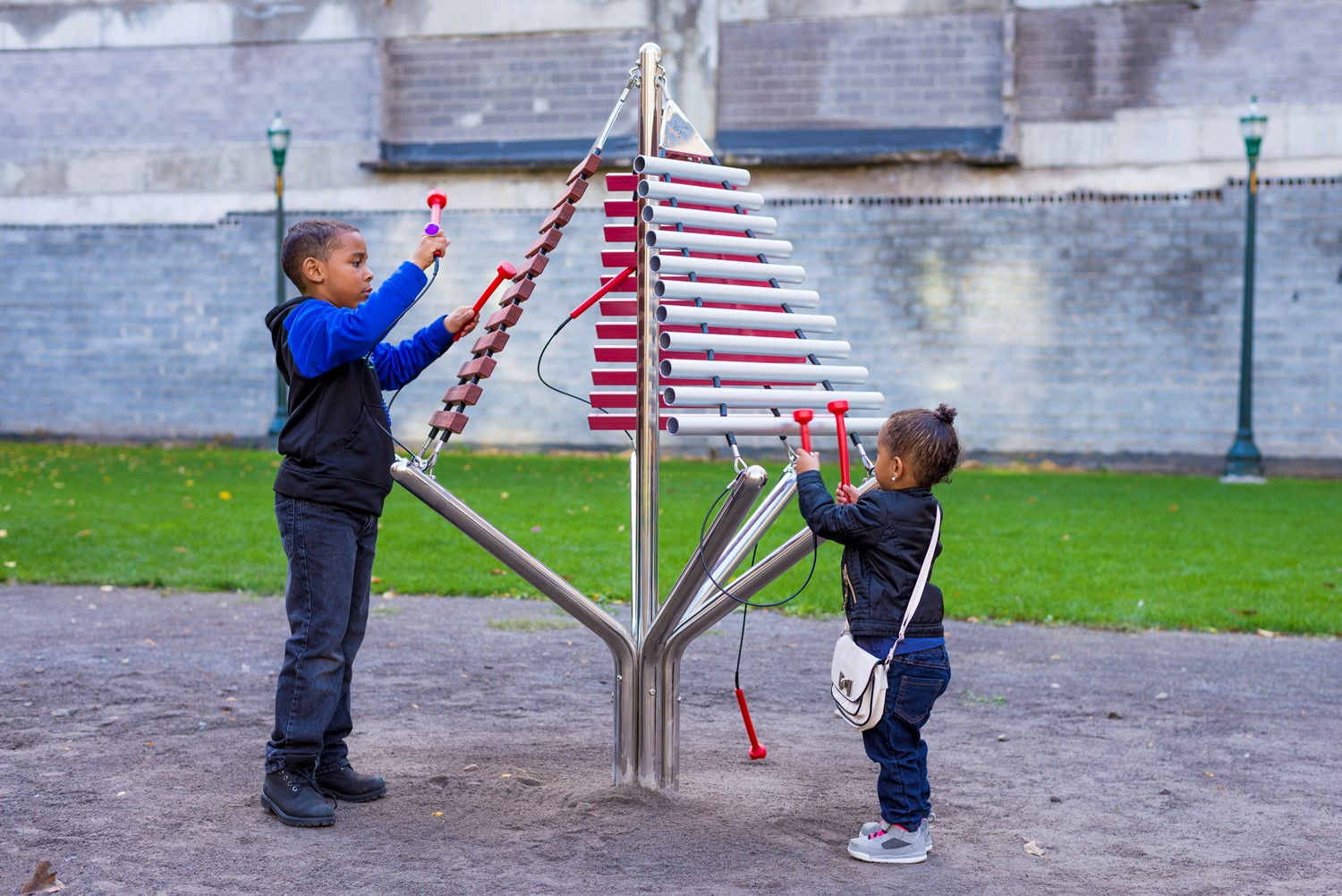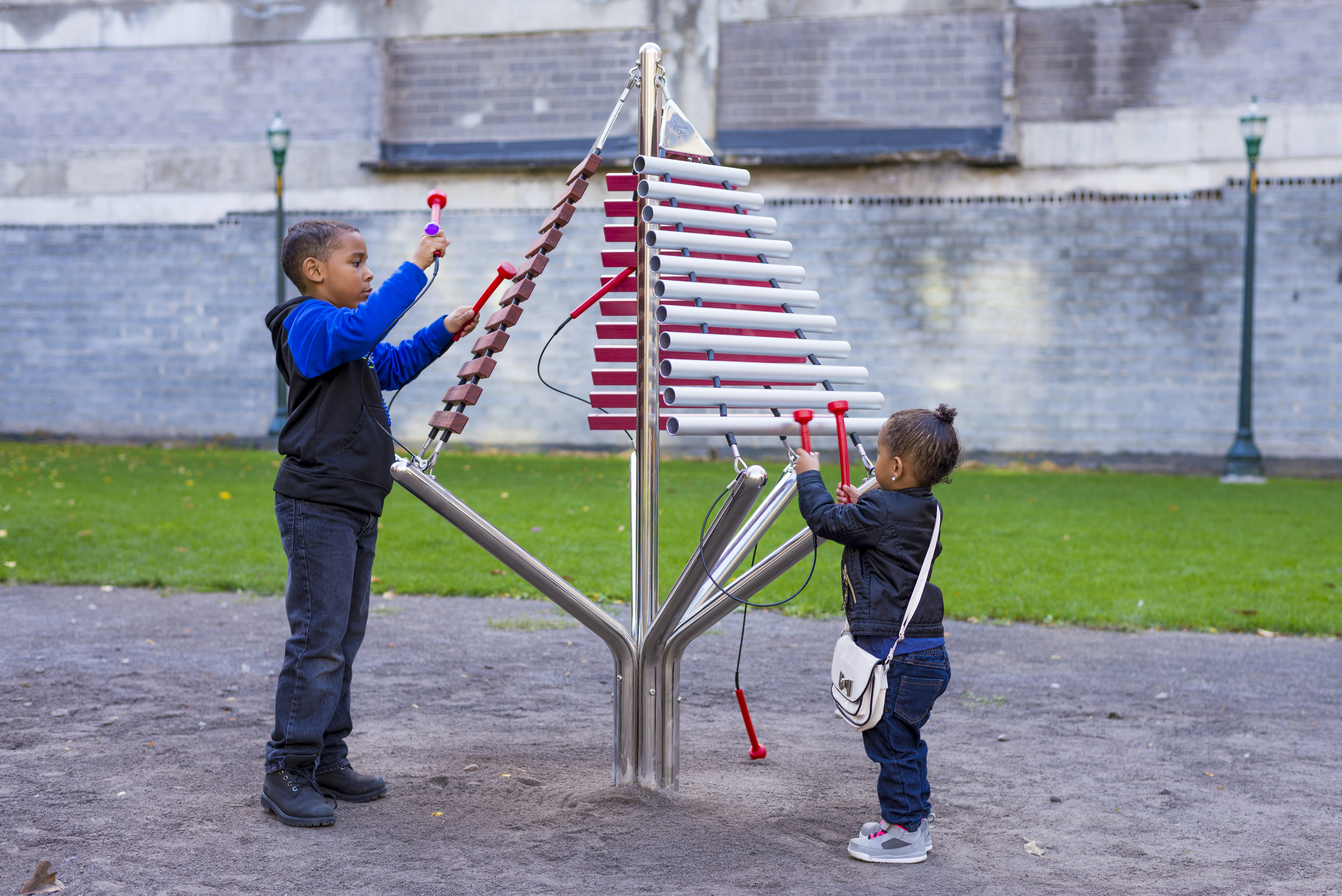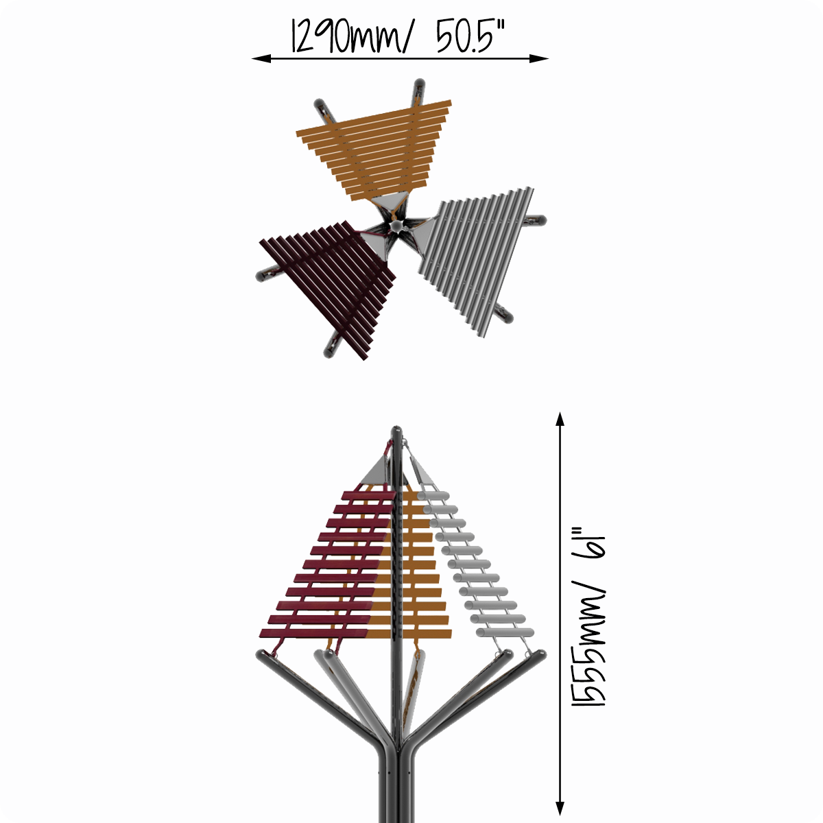 Where music meets art. This eye-catching sound sculpture simply draws people to it.<br/phil><br/phil>With notes of aluminium, GRP and hardwood cascading on three sides, this is surely a piece to delight.<br/phil><br/phil>Enhancing any landscape, this eye-catching instrument is perfect for playing with a couple of friends. There are three different materials offering different sustain and tonal properties.
