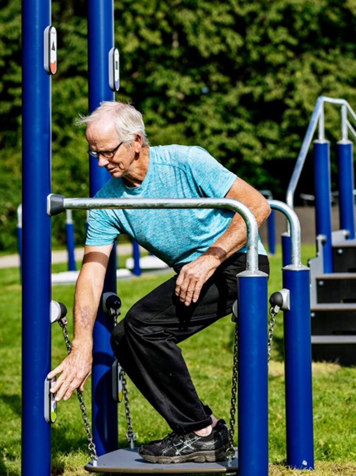 All KOMPAN fitness products are designed according to the ASTM F3101 & EN16630 Outdoor Fitness Standards. Load tests are performed as a static test by adding dynamic factors as well as safety factors to the specified load of 78 kg per user. A product intended for 1 user is loaded with 420kg.