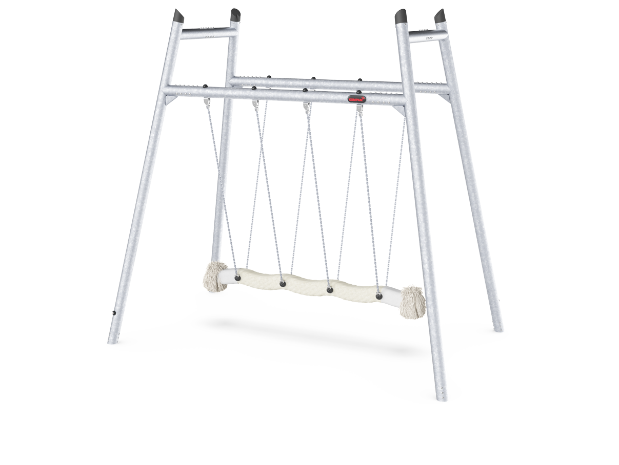 The Cocowave Pendulum Swing is an irresistible invitation for all children to play. With its robust, oblong coconut rope, the Cocowave Pendulum Swing allows for swinging from a seated, lying or standing position. The thrill of swinging – mildly or wildly – is for groups of different sizes, ages and physical abilities. It takes teamwork to make the swing move, and this stimulates important social-motional skills. Apart from being fun, swinging on the Coco-wave swing also trains muscles and important motor skills, such as balance, coordination and sense of space. These are important to train vestibular skills that matter profoundly for e.g. navigating traffic safely. The tickling, challenging feeling of speed and height stimulates children's self-esteem, risk management and other important social-emotional life skills.