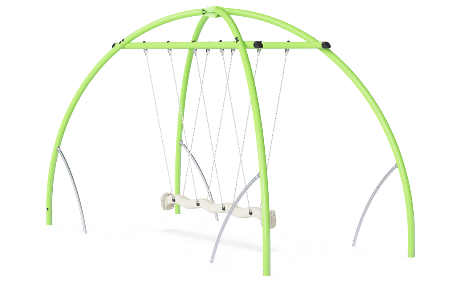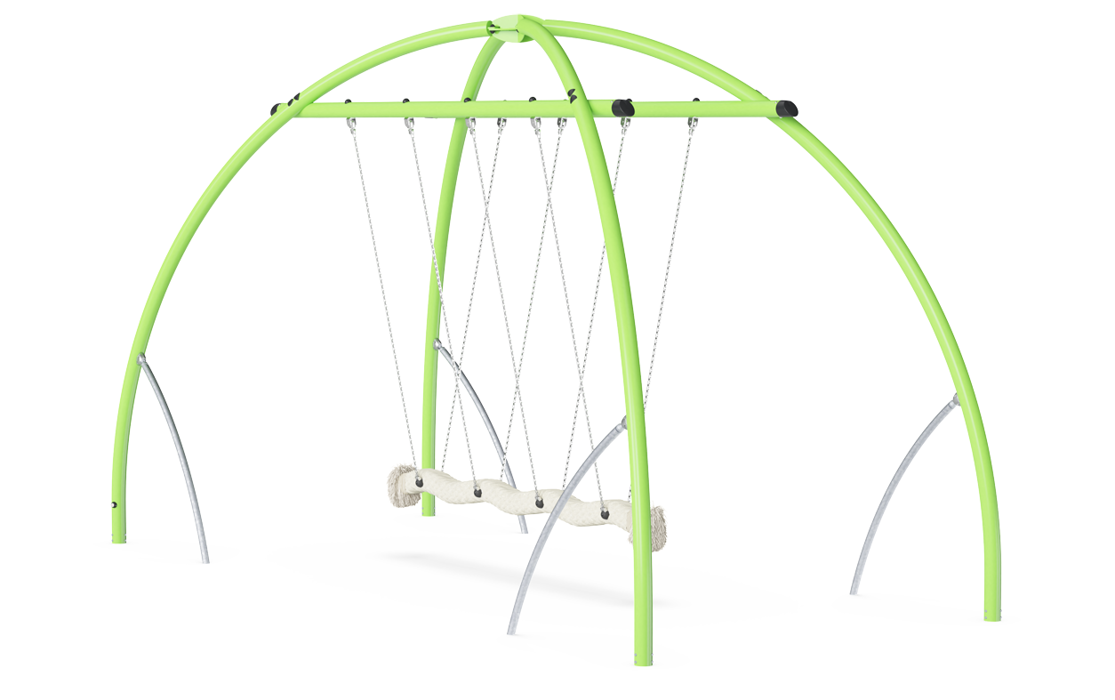 The size and appearance of the Cocowave Pendulum Swing is an irresistible invitation for all children to play. With its robust, oblong coconut rope, the Cocowave Pendulum Swing allows for swinging from a seated, lying or standing position. The thrill of swinging – mildly or wildly – is for bigger groups, of different sizes, ages and physical abilities. It takes teamwork to make the swing move, and this stimulates important social-motional skills. Apart from being fun, swinging on the Coco-wave swing also trains muscles and impor-tant motor skills, such as balance, coordination and sense of space. These are important to train vestibular skills that matter profoundly for e.g. navigating traffic safely. The tickling, challenging feeling of speed and height stimulates children's self-esteem, risk management and other important social-emotional life skills.