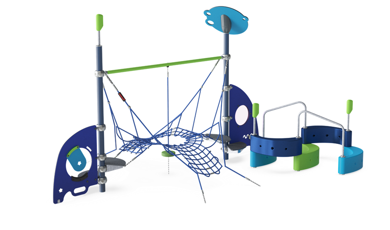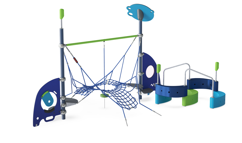 The cute play panels, the play shell climber and the spacious inclined nets of the Moss Hill invite for hours of toddler play, again and again. The many details of the panels and the curvy spaciousness of the play shell climber invite social play and cooperation. Climbing over and under the play shells and not least the spacious spider net incorporates an understanding of space, shape and measures in toddlers. This understanding is basic in understanding mathematics. Climbing and crawling the bouncy net and rope train cross-coordination skills and spatial awareness, which are crucial in navigating the world confidently and securely. The many opportunities to play together in smaller and bigger groups make the Moss Hill a fine play piece to help children negotiate and show consideration of others, which are important social-emotional skills that are instrumental in building friendships.