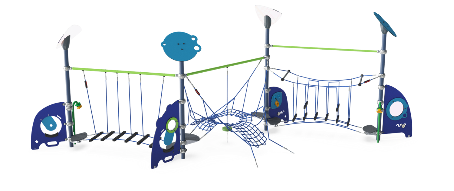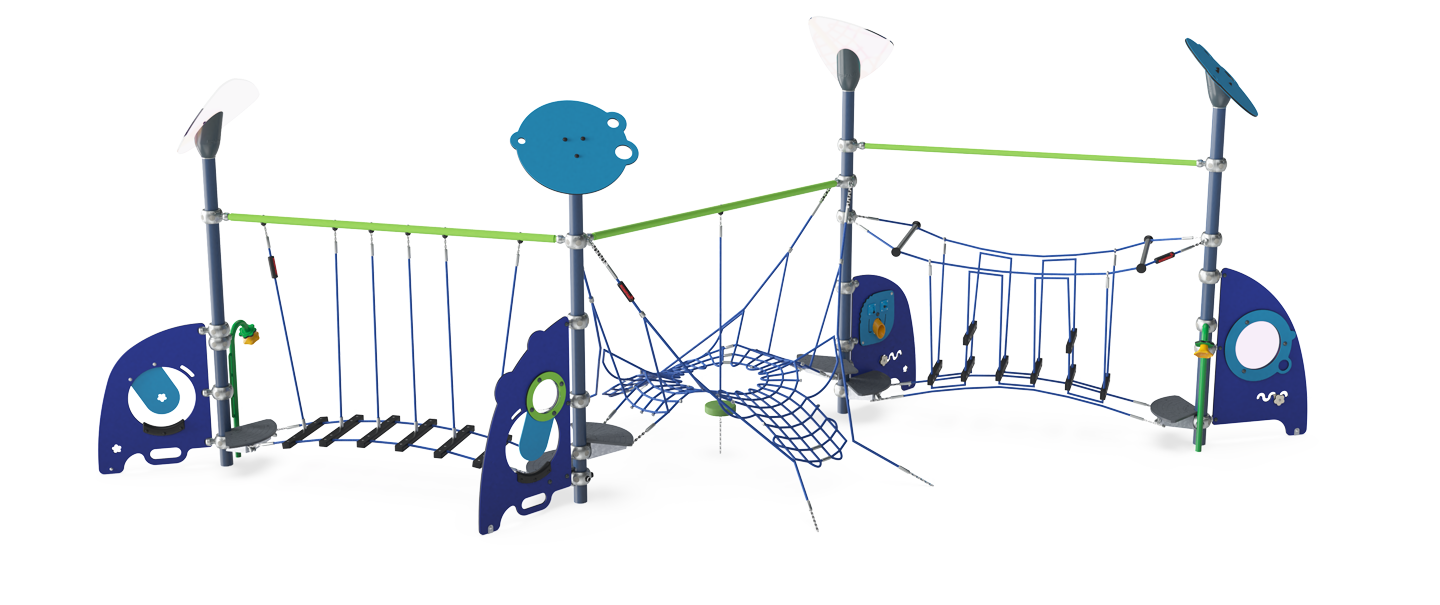 The cute play panels and talk tubes and the versatile climbing offerings attract children to come back to the No Return Trail again and again. The play panels’ varied activities support social play and cause-and-effect understanding. The Hurdle Bridge is a fun challenge to climb over and under, and the varied climb challenges the child’s cross-coordination and spatial awareness. These motor skills are fundamental in understanding space, shapes and measures, the basics in understanding mathematics. The spider net allows for all to play thanks to the varied entrance points. The cascading bridge gently bounces back the children’s movements, training their senses of balance and space. The various trail activities train children’s muscles, balance and coordination, which are fundamental for moving confidently in the world. Negotiating turn-taking when playing with other children on the trail supports social-emotional skills and the ability to make friends.