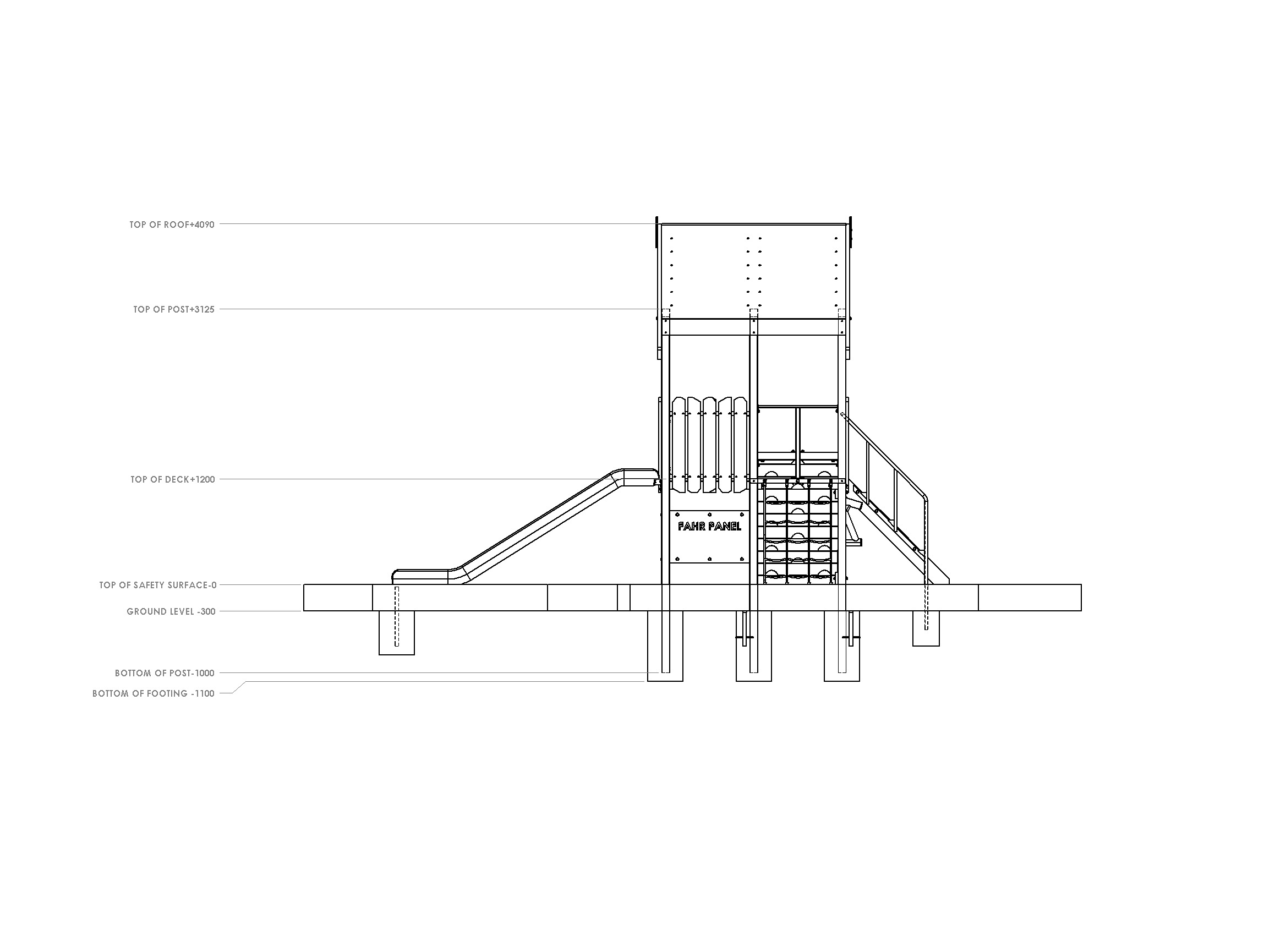 Our modular range of playground designs can be made in either wood or aluminium. Aluminium - Posts and Decks Wood - H5 Posts and H4 Decks All steel events are constructed from black steel and then Hot Dip Galvanised after manufacturer. This combined with all Stainless Steel fittings gives the best possible protection for the New Zealand environment.