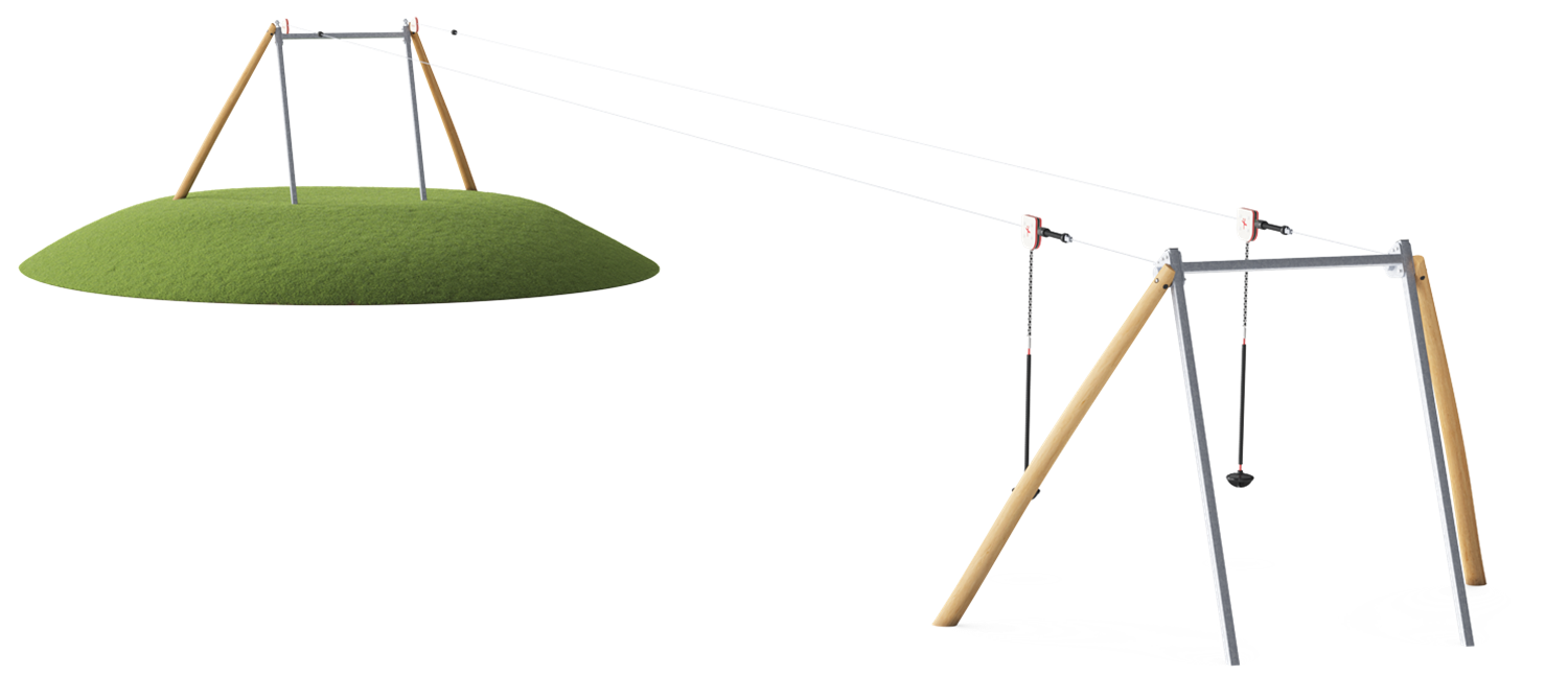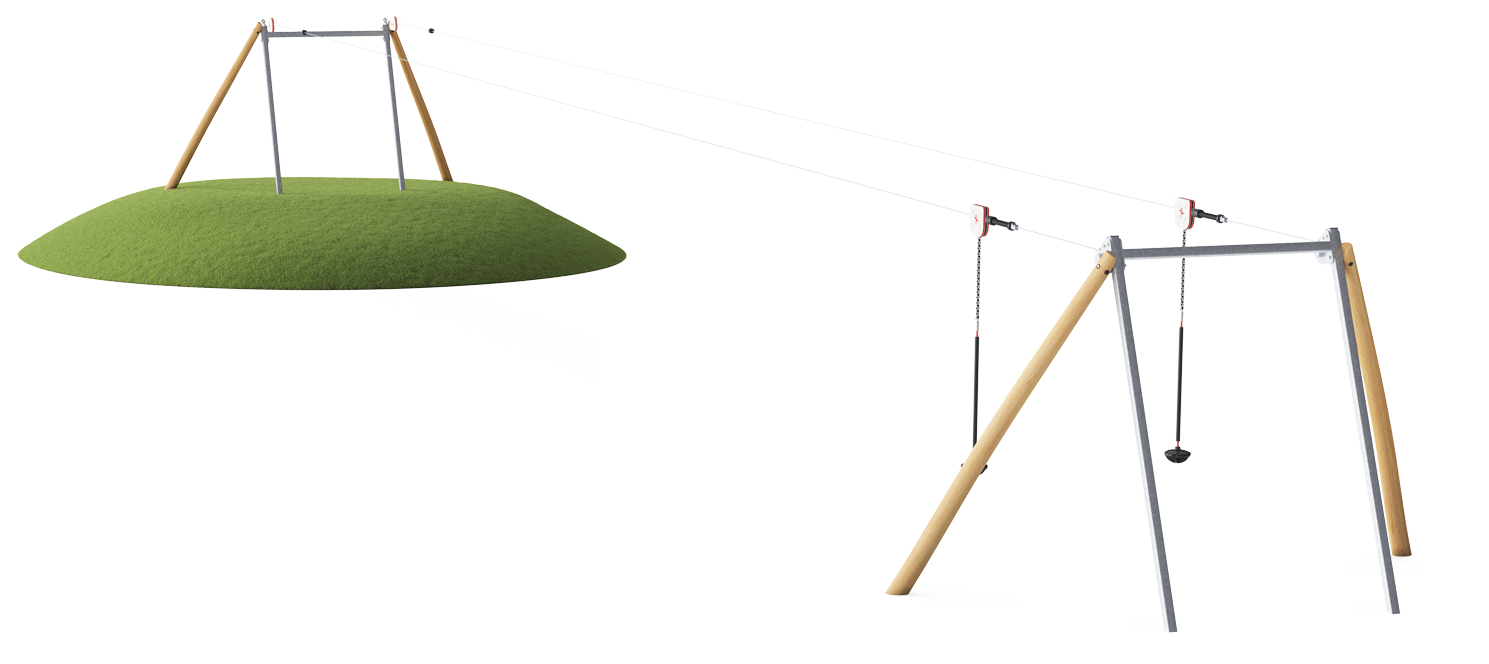 Flying Foxes are a well loved classic and alway well used where ever they are installed. Our Robinia Cableways are have the quietest ride of any on the market so you won't upset the neighbors! Just about anyone can play on the Cableway due to its length and supportive seat and handhold. The thrill of gliding through the air makes children want to play on the cableway again and again. The feeling of weightlessness and theswooshing through the air, helps develop spatial awareness skills as well as the child's understanding of gravity, space and speed. Social skills are trained as children diligently hand back the seat to the next user in line. The running and pulling involved in this trains the child's cardio as well as upper body muscles.