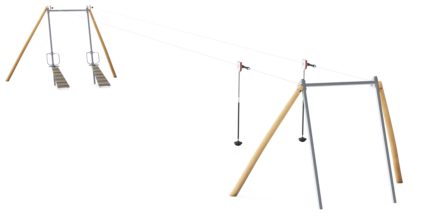 Flying Foxes are a well loved classic and alway well used where ever they are installed. Our Robinia Cableways are have the quietest ride of any on the market so you won't upset the neighbors! Just about anyone can play on the Cableway due to its length and supportive seat and handhold. The thrill of gliding through the air makes children want to play on the cableway again and again. The feeling of weightlessness and theswooshing through the air, helps develop spatial awareness skills as well as the child's understanding of gravity, space and speed. Social skills are trained as children diligently hand back the seat to the next user in line. The running and pulling involved in this trains the child's cardio as well as upper body muscles.
