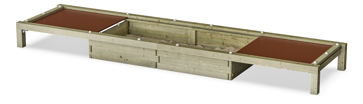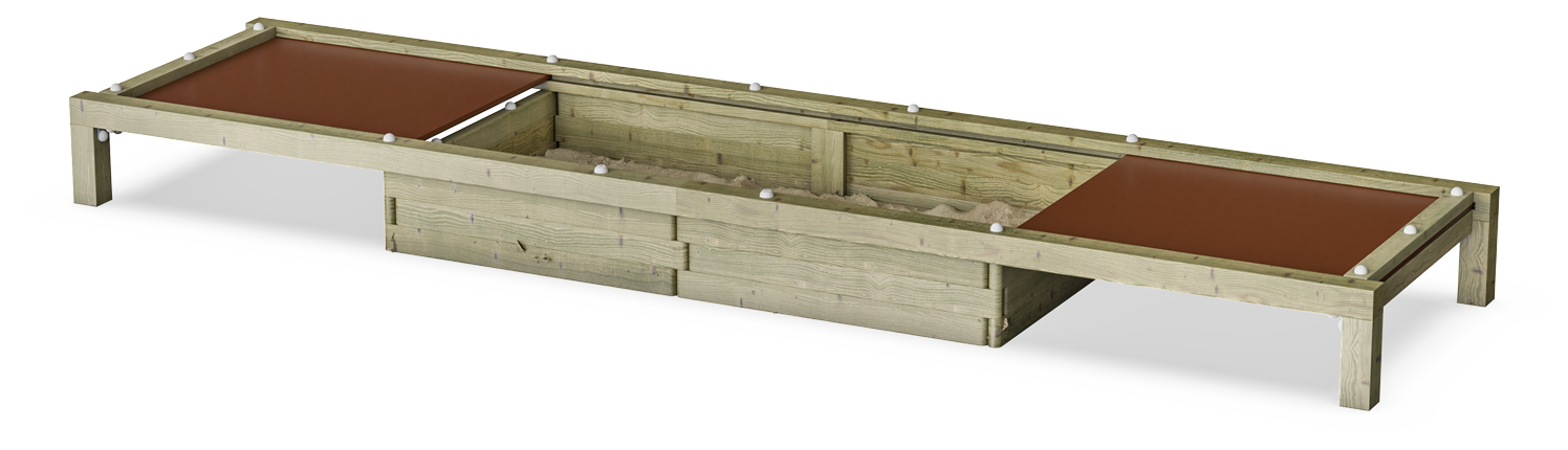 This appealing Sand Box With Lids invites children to play for long periods of time. Thanks to the two lids, the sand box can be covered and protected. The lids also function as play tables and seats for parents or carers. Carers have seats, and more parents can be seated facing the sandbox to observe. This is well-known to facilitate longer stays in the playground. The lids also create a space for the children where they can store toys or create their home, their shop, their workshop etc. Sand invites deep play. The changeable character of sand from when dry to when wet fascinates children. It additionally trains their tactile sense and understanding of material character and nature phenomena. These are important life skills that help the child understand their surrounding world. In short, sand play helps to shape motor skills and cognition.