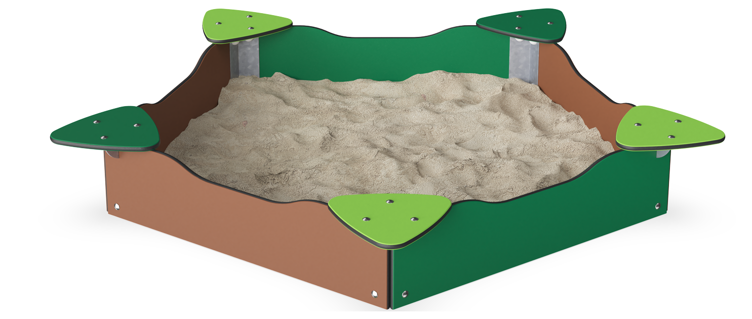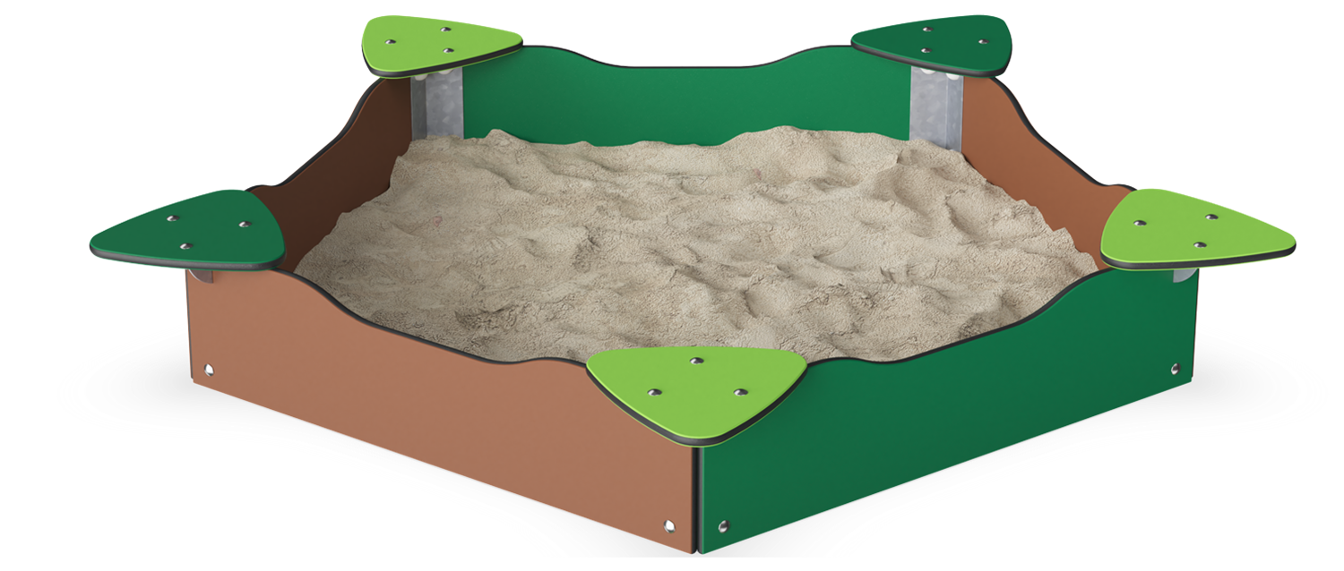 This appealing sandpit invites children to play with friends or alone for long periods of time. Thanks to the five coloured seats or tables, the play gets diversity: the children have a firm plate to place sand tools and sand creations on. Carers have seats, and more parents can be seated facing the sandbox. This is a well-known facility to enable longer stays. The additional four seats give children the possibility of creating each their space, from where they can have their home, their shop, their workshop. Sand invites deep play. The changeable character of sand from when dry to when wet fascinates children. It additionally trains their tactile sense and understanding of material character and nature phenomena. These are important life skills that help the child understand the surrounding world. In short, sand play shapes motor skills and cognition.