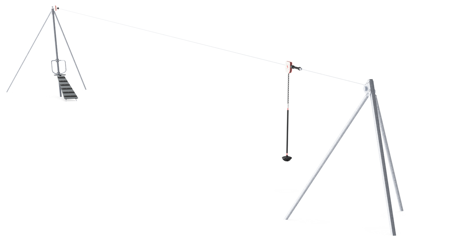 Children return to the Cableway again and again! The supportive seat and handhold makes it universal and playable for all. The thrill of gliding through the air makes the attraction high, again and again. Gliding through the air helps develop spatial understanding as well as an understanding of gravity, time and speed. Children diligently hands back the seat to the next user in line, using their empathy, helpfulness and cooperative skills. The running and pulling involved in playing on the Large Cableway trains the child's cardio, cross-coordination, proprioception as well as strength. The large cableway thus unites children in thrilling, cooperative play, across ages and abilities.