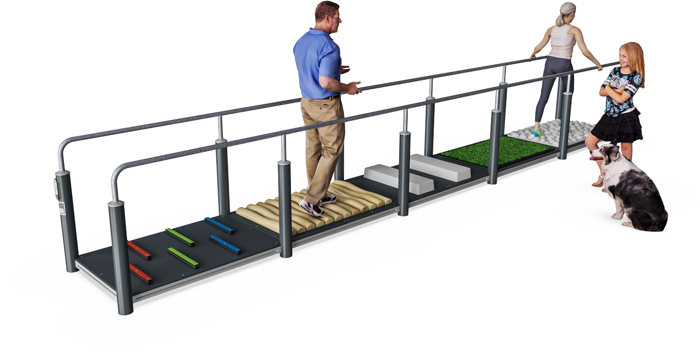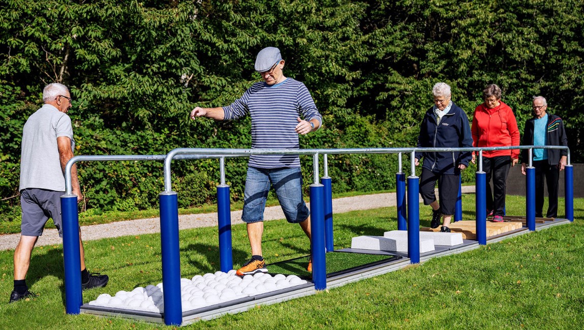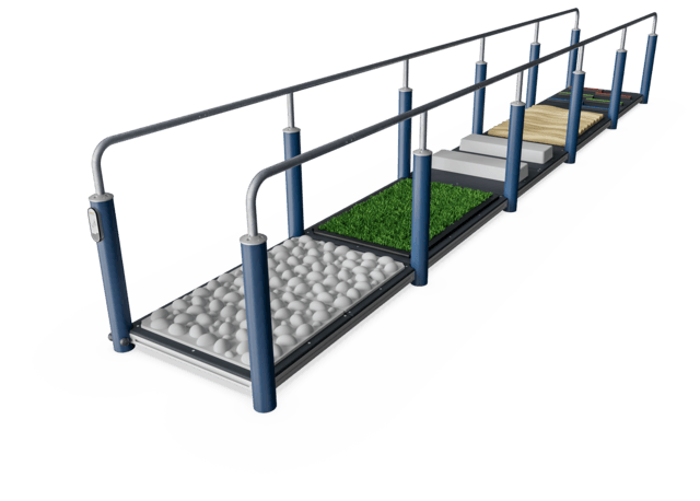 One of the major problems for elderly people is falling. These accidents often happen because the elderly person is not able to overcome or react to minor changes in the surface. The surface challenge gives the opportunity to, under safe conditions, train to overcome typical obstacles found in nature and urban environments. Some of the challenges here focuses on the important toe-lift. Either on small obstacles or bigger ones like the curb. Other challenges focuses on ankle- and overall foot control. Finally, the different surfaces and materials stimulates sensory feedback which also enhances gait stability.
